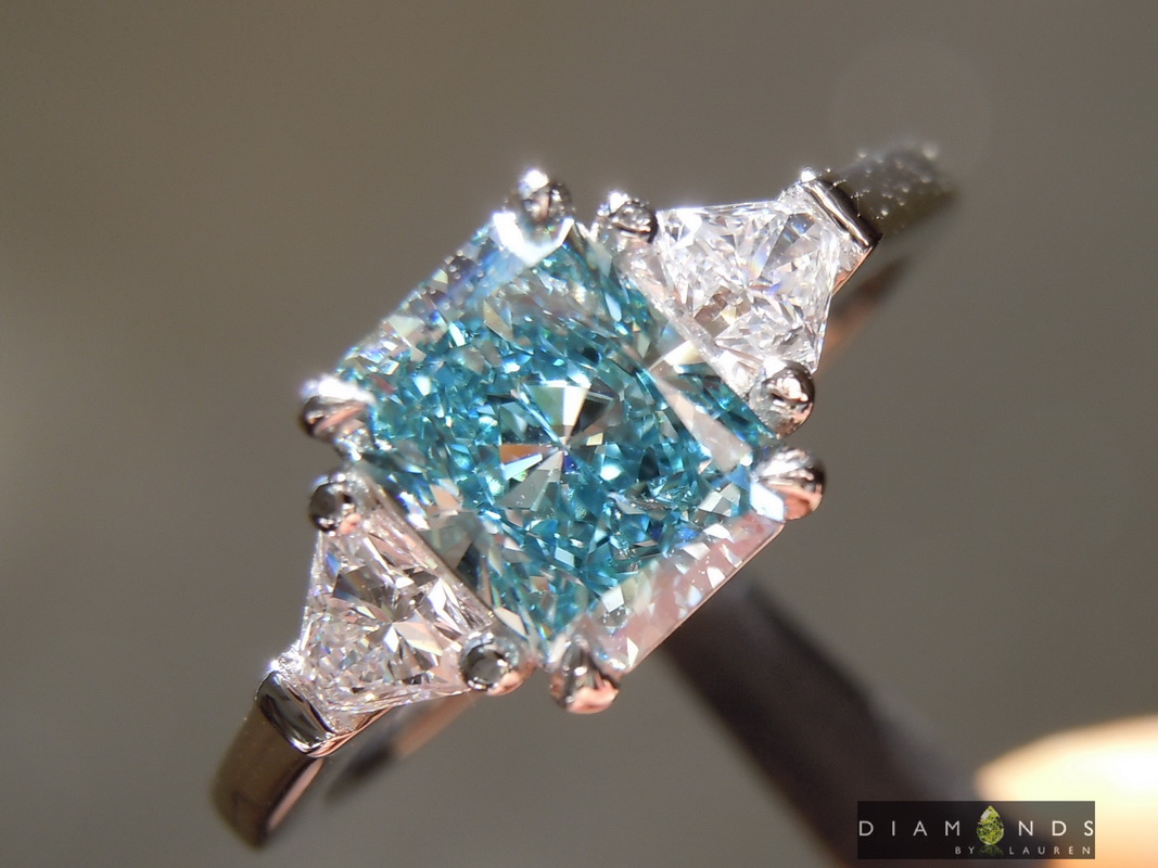 The cut of this radiant is hard to capture in pictures - it is beautifully cut in person. The blue sparkle is consistent over the stone.