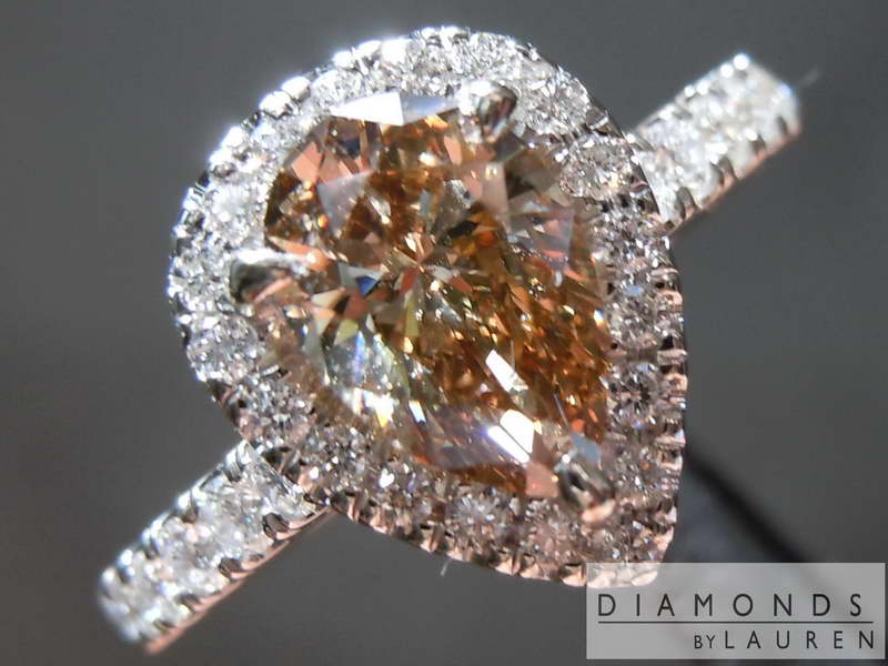 1.11ct Fancy Dark Orangy Brown SI2 Pear Shape Diamond Halo Ring