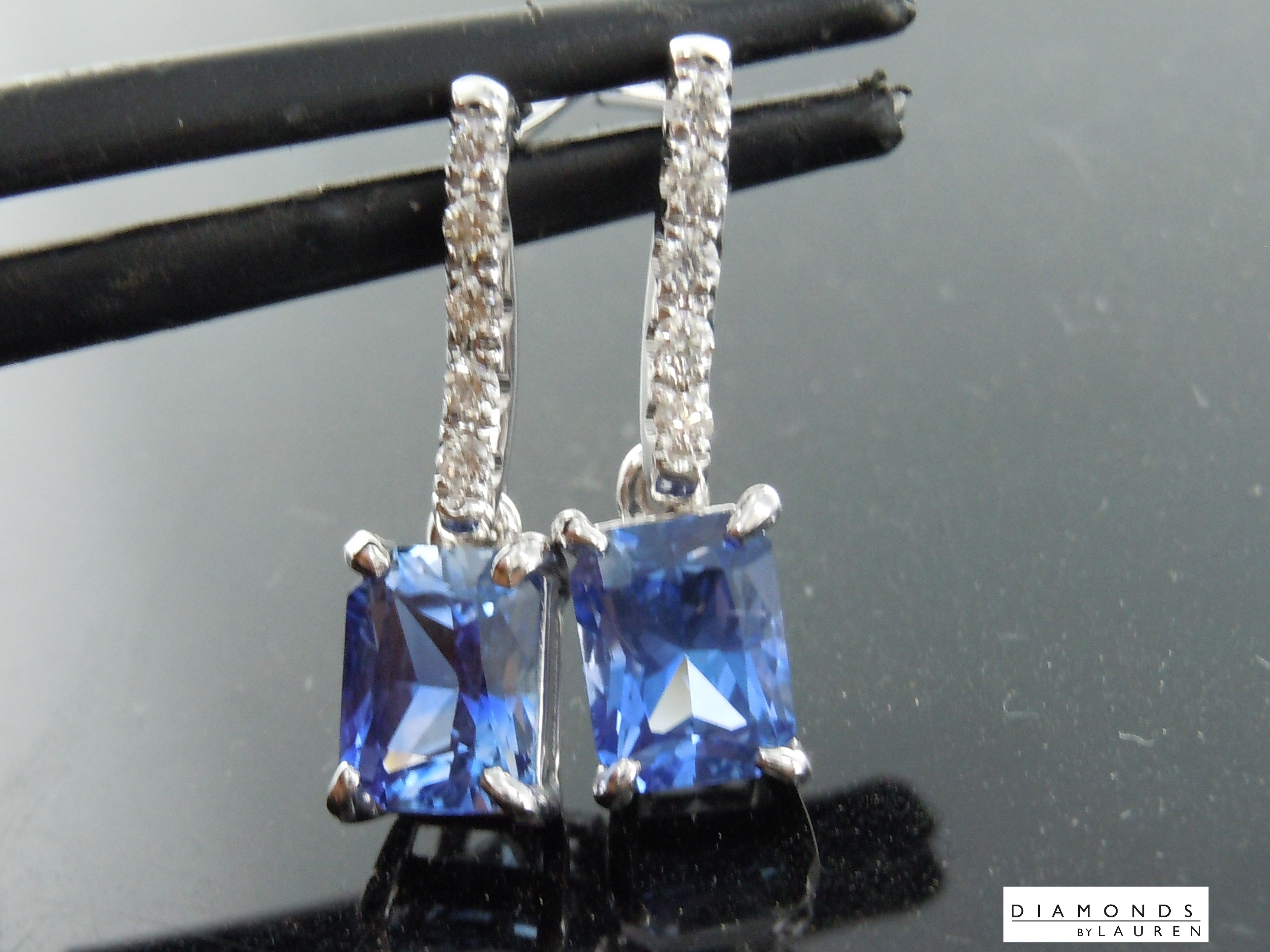 The delicate looking row of diamonds from which the sapphires dangle are a visual treat. White which really contrasts the blue. They're one of a kind and special.