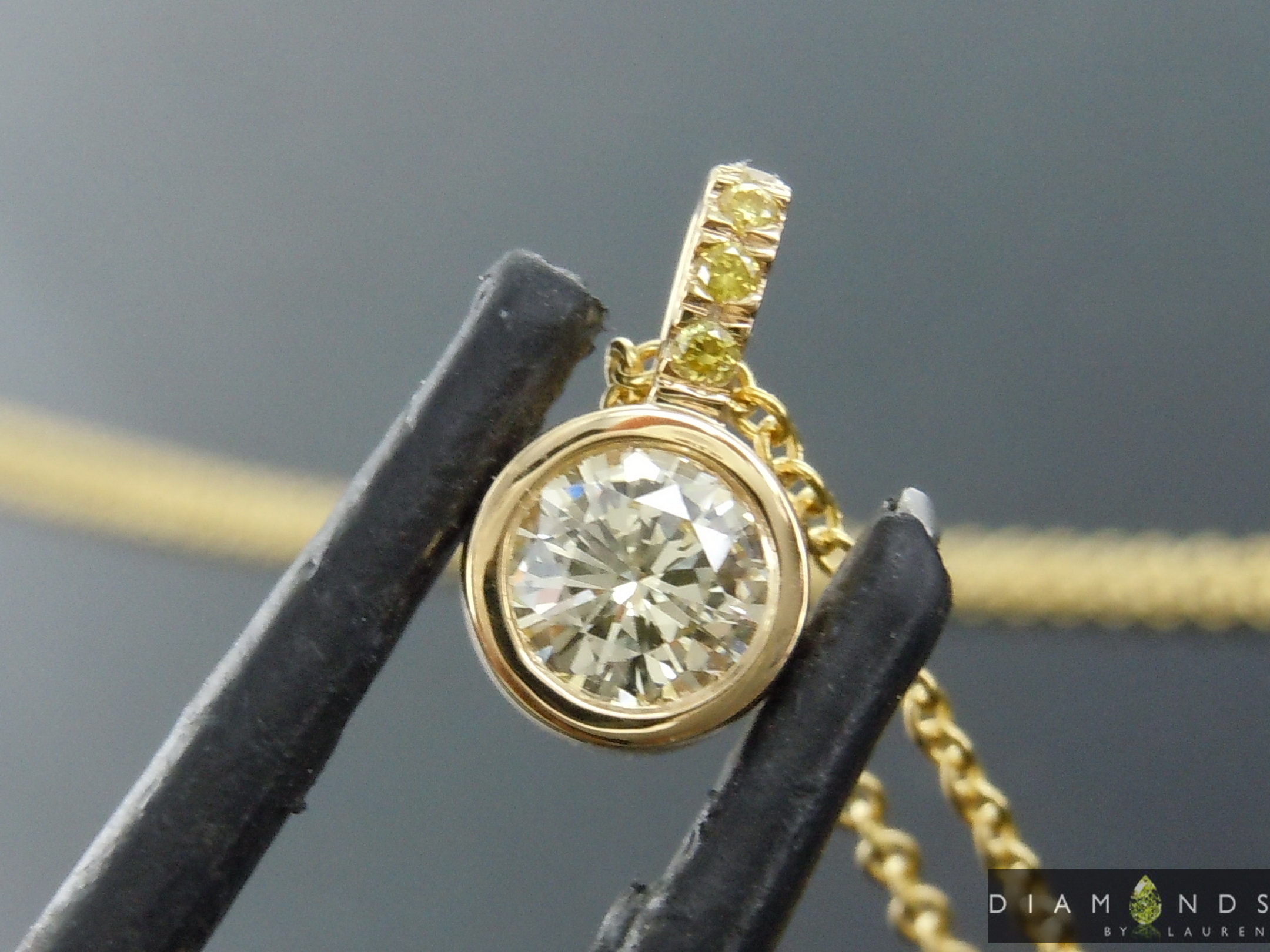 The stone looks amazing in this bezel. The bale has four teeny Intense Yellow sparklers set into it.