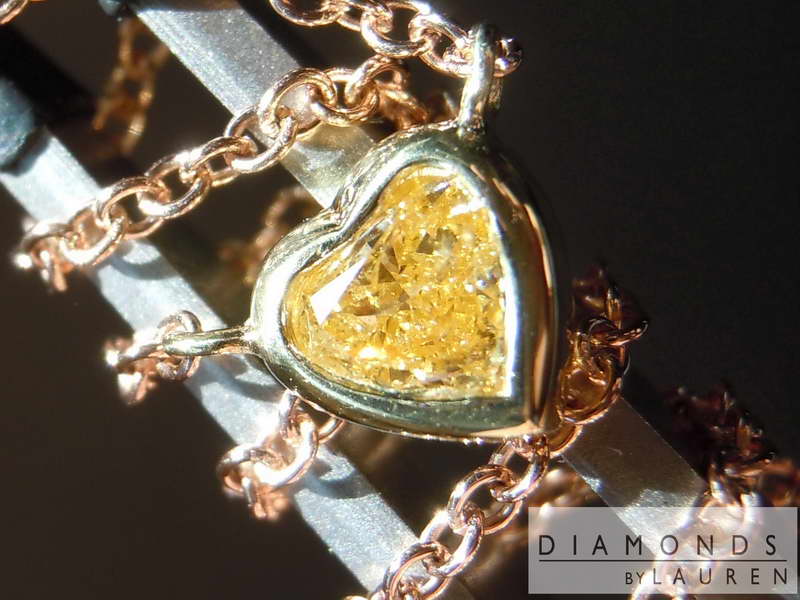 Gorgeous intense orange-yellow heart diamond. The color is delish!