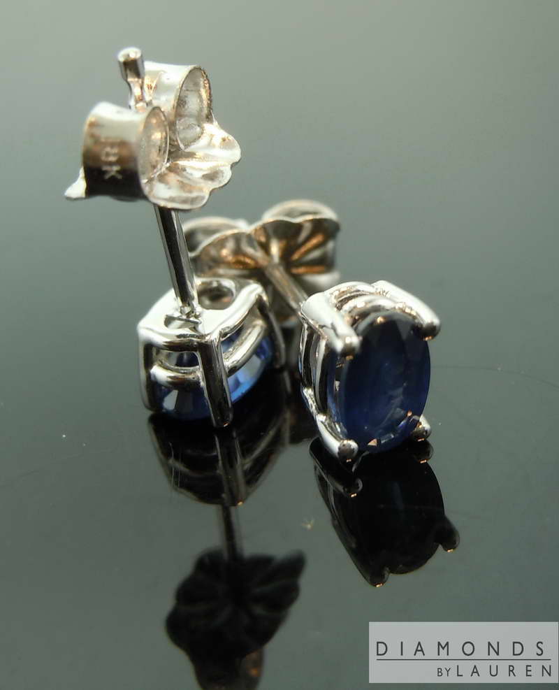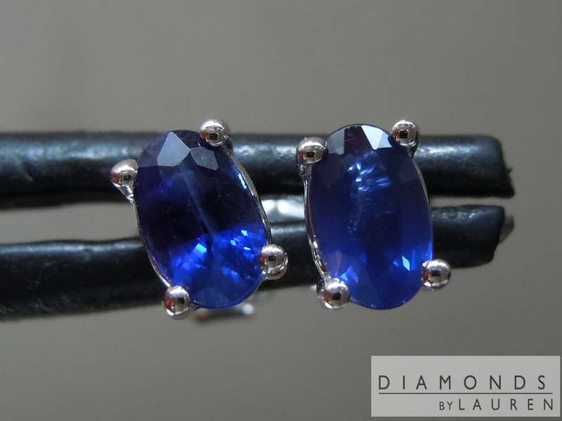 ITEM:# R7731 CENTER STONE: TOTAL WEIGHT: 0.69cts QUANTITY: 2 STONE TYPE: Sapphire SHAPE: Oval Brilliant COLOR: Blue MEASUREMENTS: 5.00 x 3.00 mm MOUNTING: 18Karat Yellow Gold.