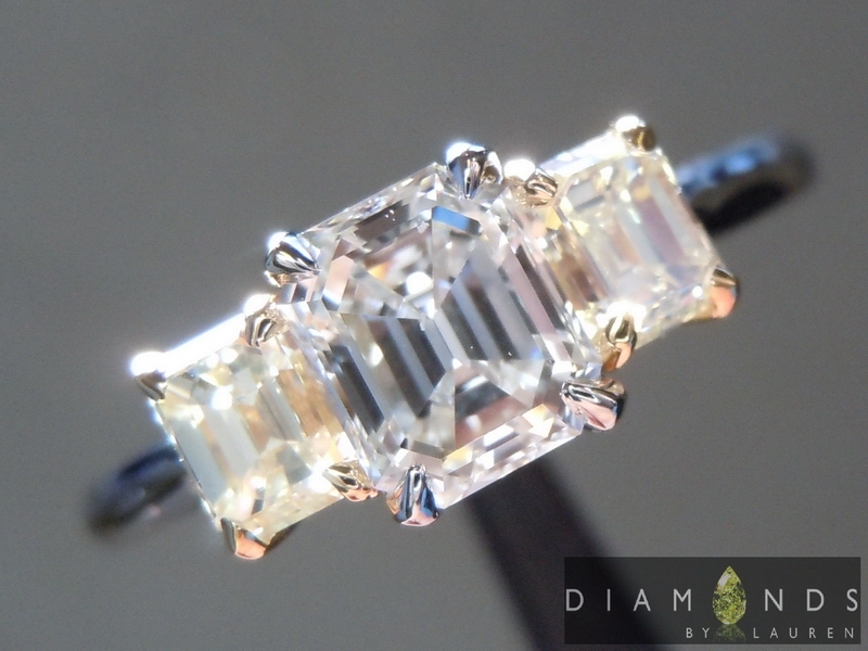 We flanked the center stone with some lovely light yellow emerald cut diamonds.