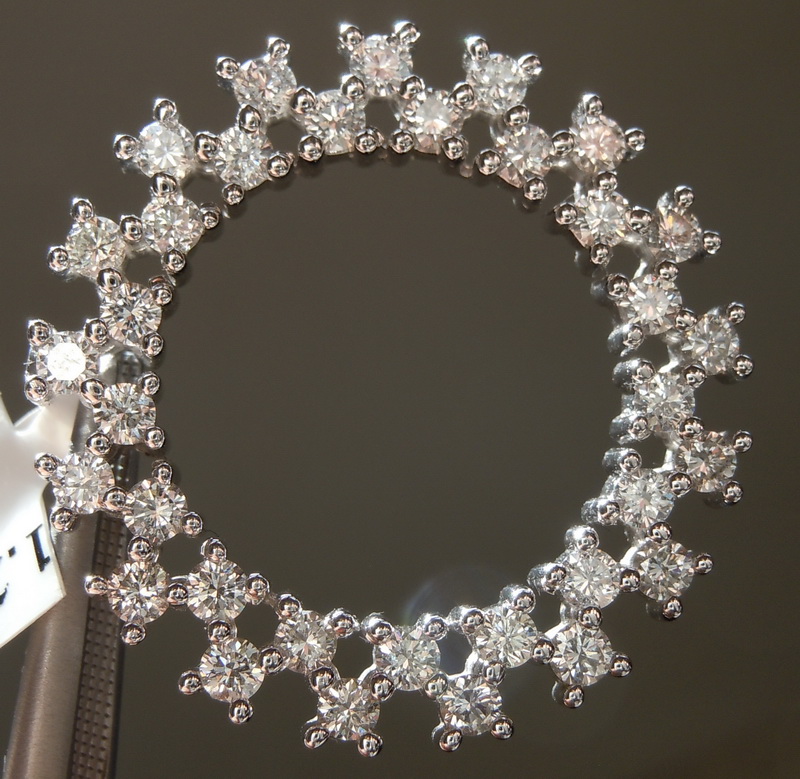 This gives the pendant an almost floral or lace look to it. It is designed such that the pendant will look like it is floating on the chain.