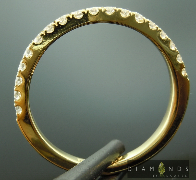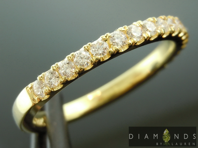 Take this ring, which was made with icy white E-F color diamonds set into 18kt yellow gold. Nice contrast! Except the client ordered the ring with Fancy Light Yellow diamonds, to match the engagement ring we made for them.